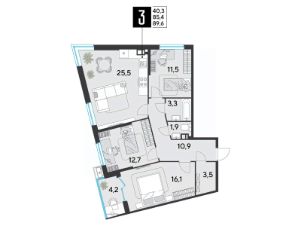 Срок сдачи: 2 кв. 2026, общей площадью 89.6 кв.м., на 3 этаже.