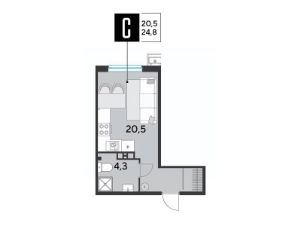 Срок сдачи: 2 кв. 2026, общей площадью 24.8 кв.м., на 3 этаже.