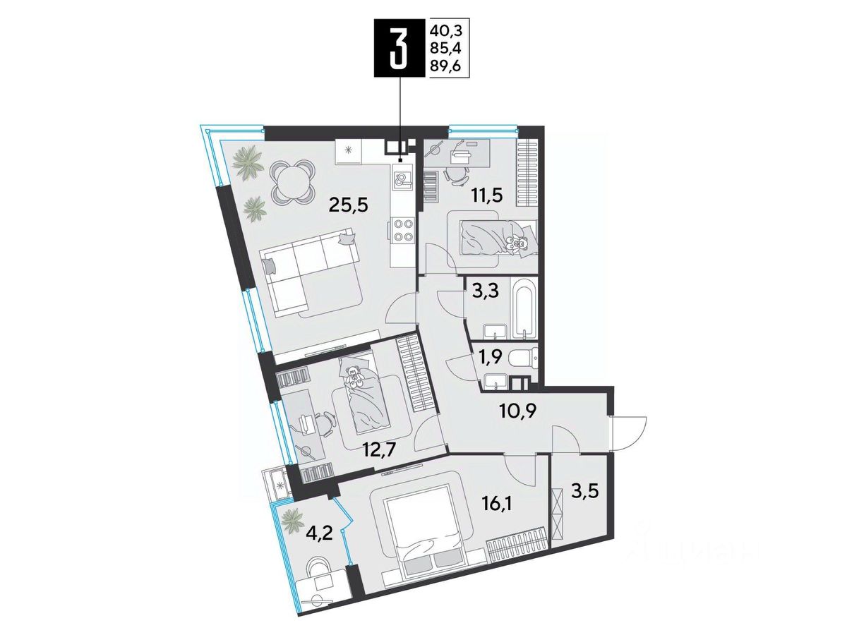 Срок сдачи: 2 кв. 2026, общей площадью 89.6 кв.м., на 6 этаже.