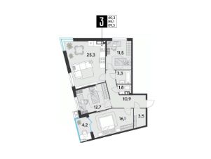 Срок сдачи: 2 кв. 2026, общей площадью 89.3 кв.м., на 12 этаже.