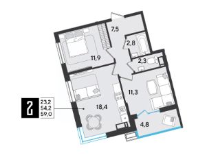 Срок сдачи: 2 кв. 2026, общей площадью 59 кв.м., на 15 этаже.