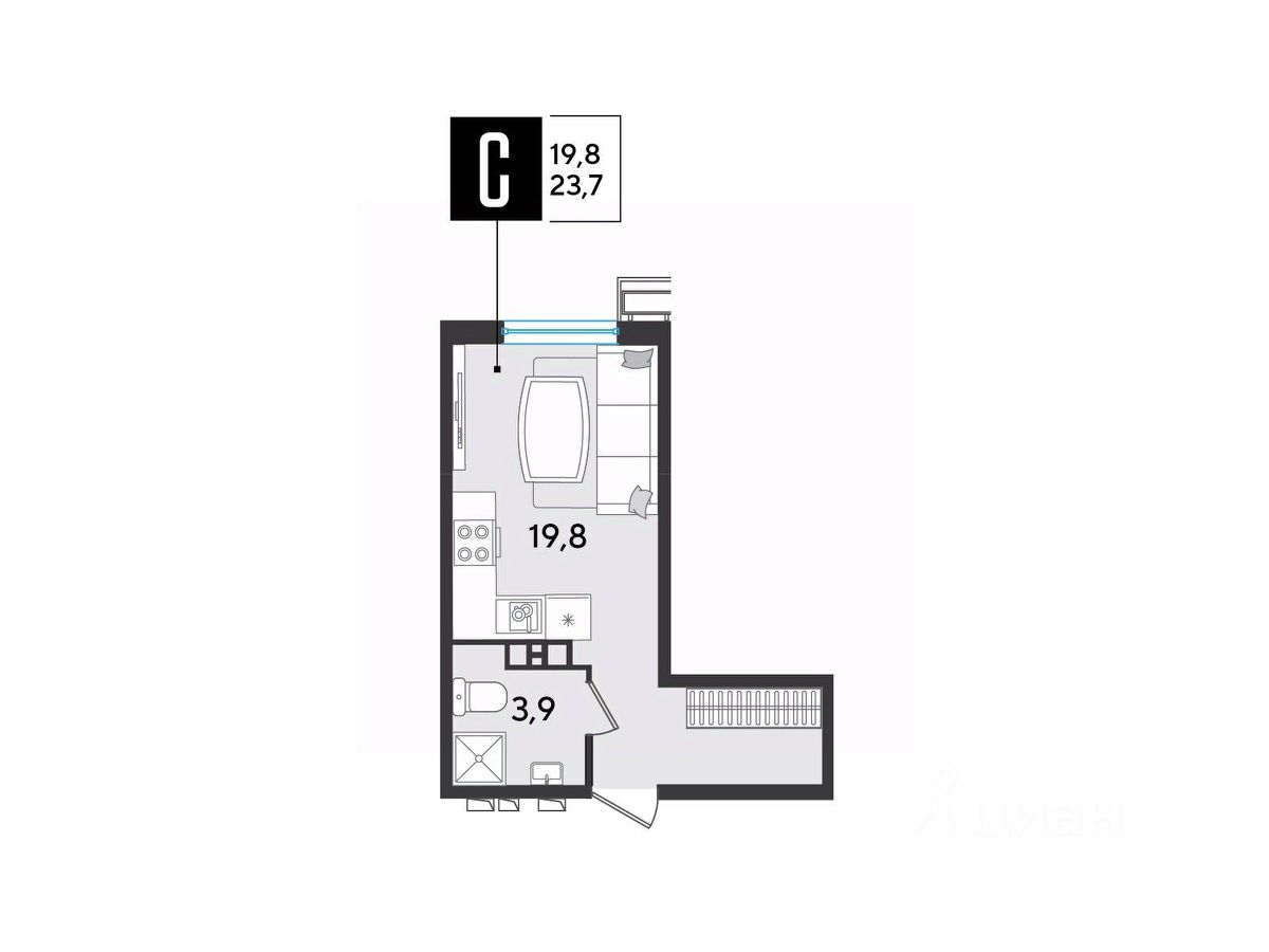 Срок сдачи: 2 кв. 2026, общей площадью 23.7 кв.м., на 4 этаже.