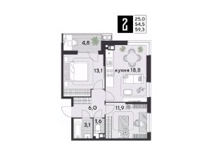 Срок сдачи: 2 кв. 2026, общей площадью 59.3 кв.м., на 7 этаже.