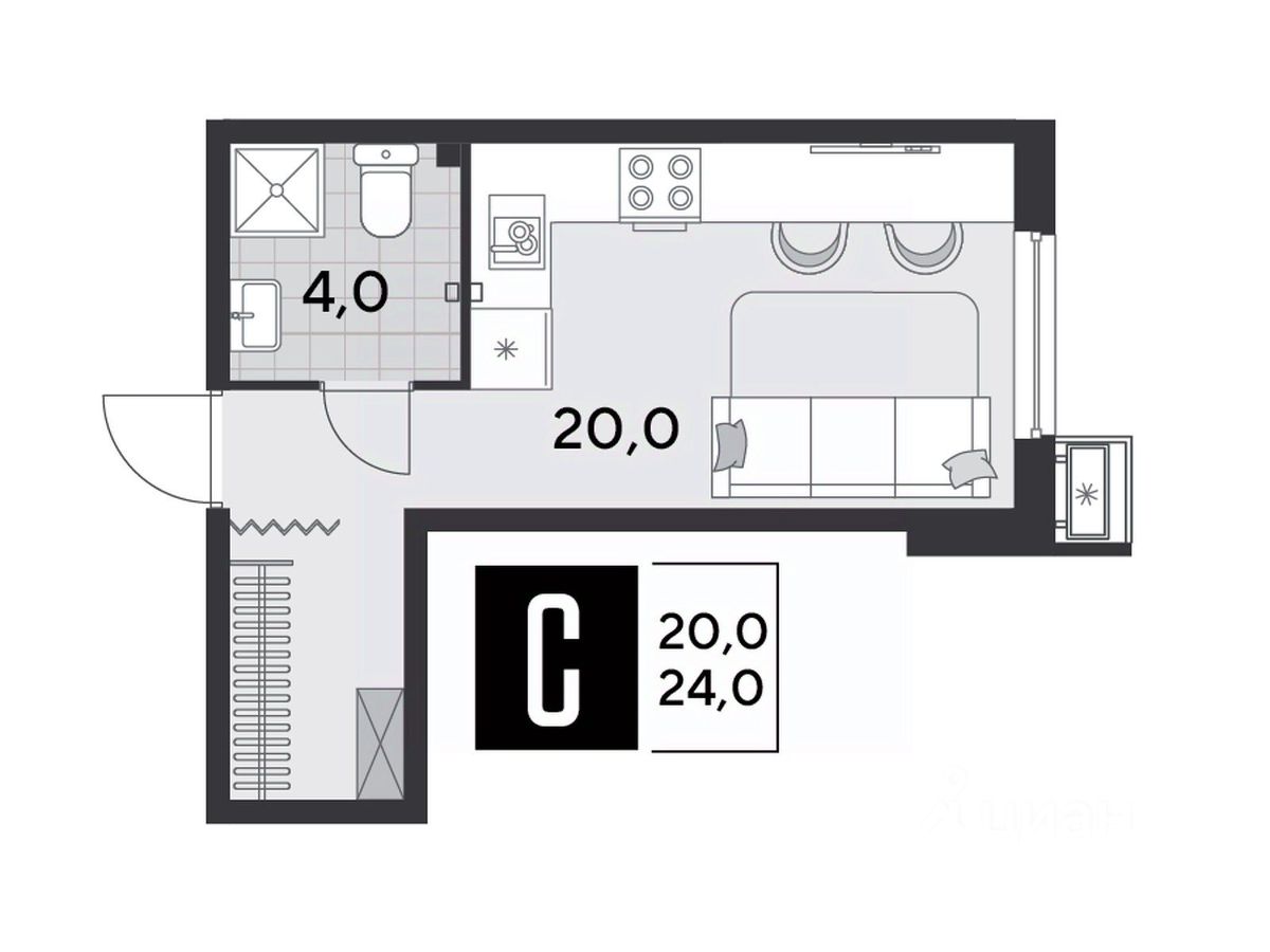 Срок сдачи: 2 кв. 2026, общей площадью 24 кв.м., на 2 этаже.