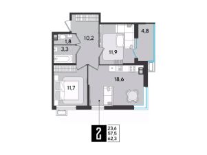 Срок сдачи: 2 кв. 2026, общей площадью 62.3 кв.м., на 3 этаже.
