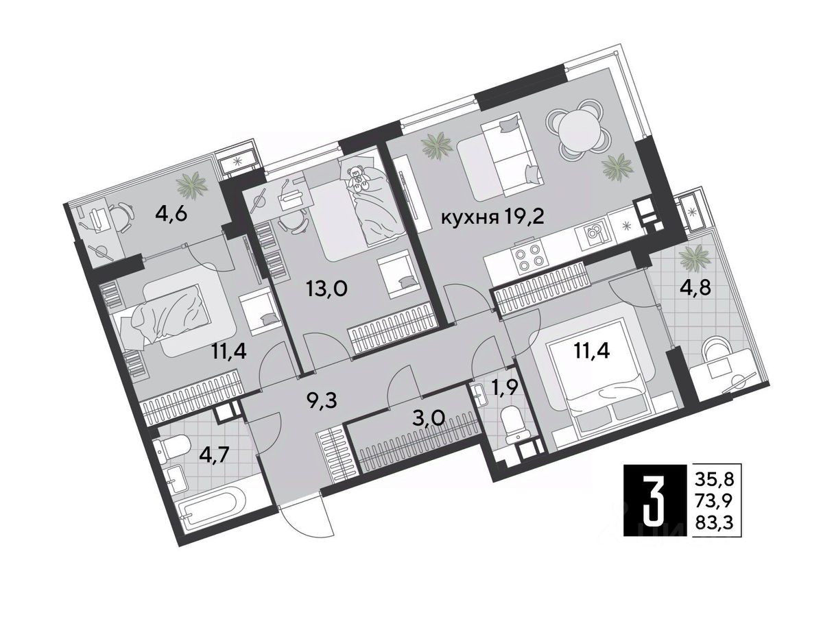 В продаже 3-комнатная квартира от застройщика! ЖК "Парк Победы 2", г. Краснодар, Литер 29