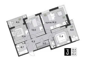 Срок сдачи: 1 кв. 2026, общей площадью 83.3 кв.м., на 5 этаже.