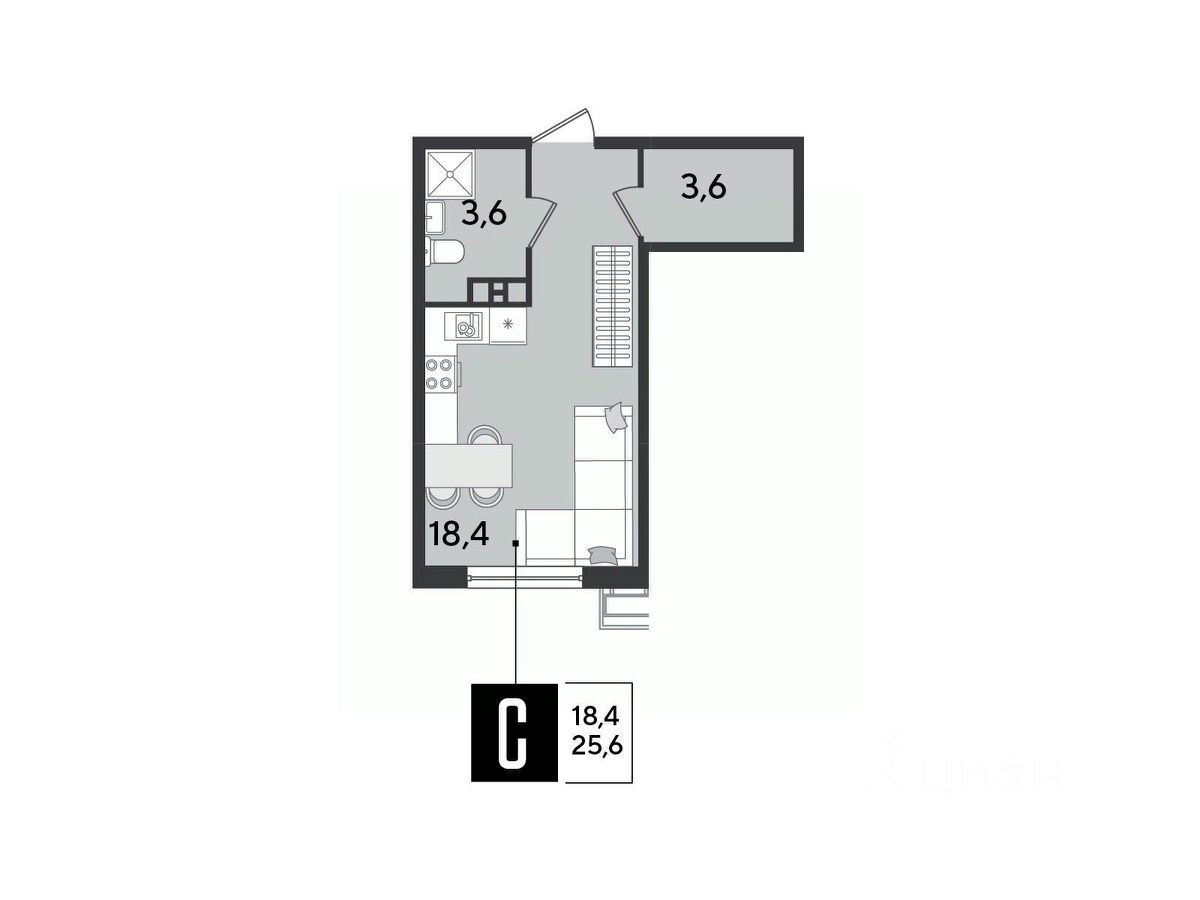 Срок сдачи: 2 кв. 2026, общей площадью 25.6 кв.м., на 6 этаже.