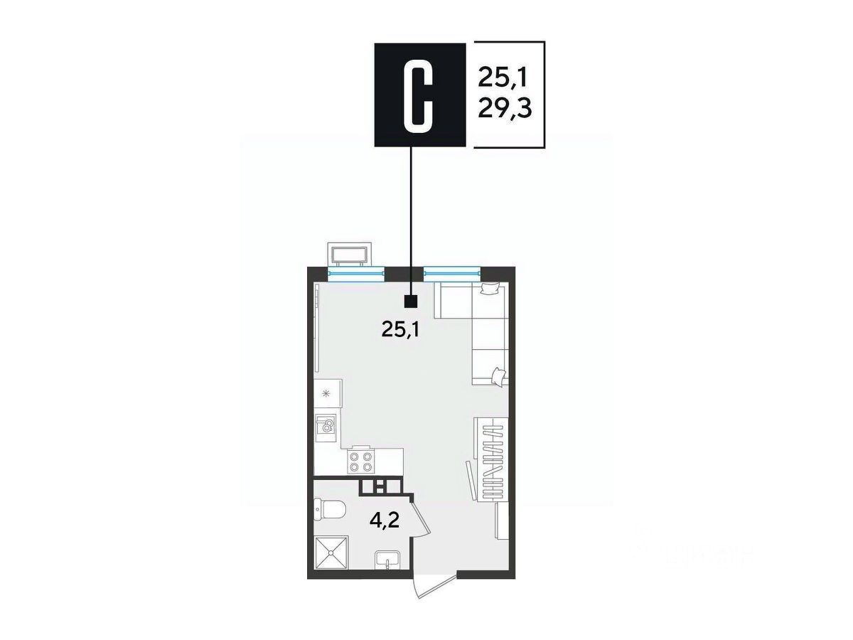 Срок сдачи: 2 кв. 2026, общей площадью 29.3 кв.м., на 6 этаже.