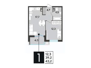 Срок сдачи: 2 кв. 2026, общей площадью 43.2 кв.м., на 7 этаже.