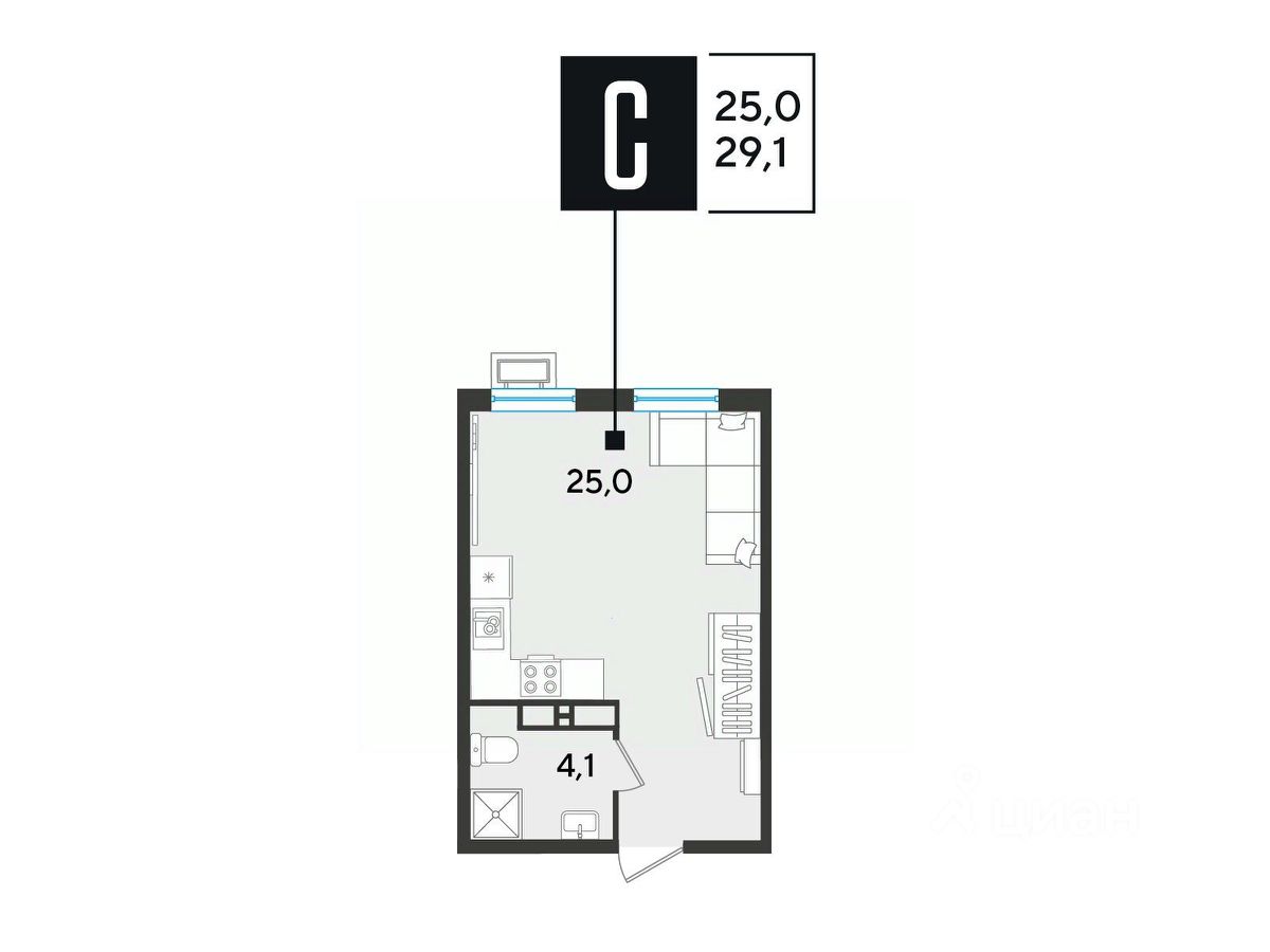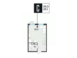 Срок сдачи: 2 кв. 2026, общей площадью 29.1 кв.м., на 18 этаже.