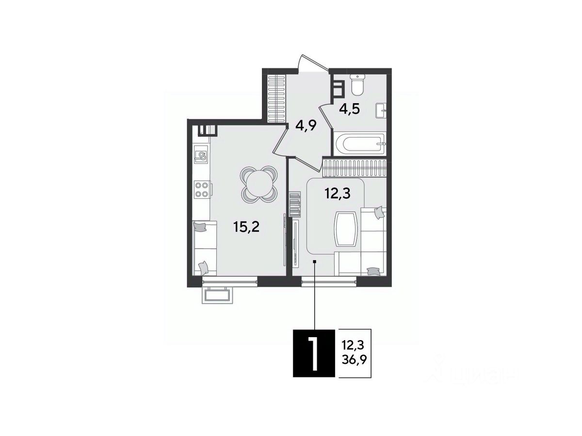 Срок сдачи: 2 кв. 2026, общей площадью 36.9 кв.м., на 4 этаже.