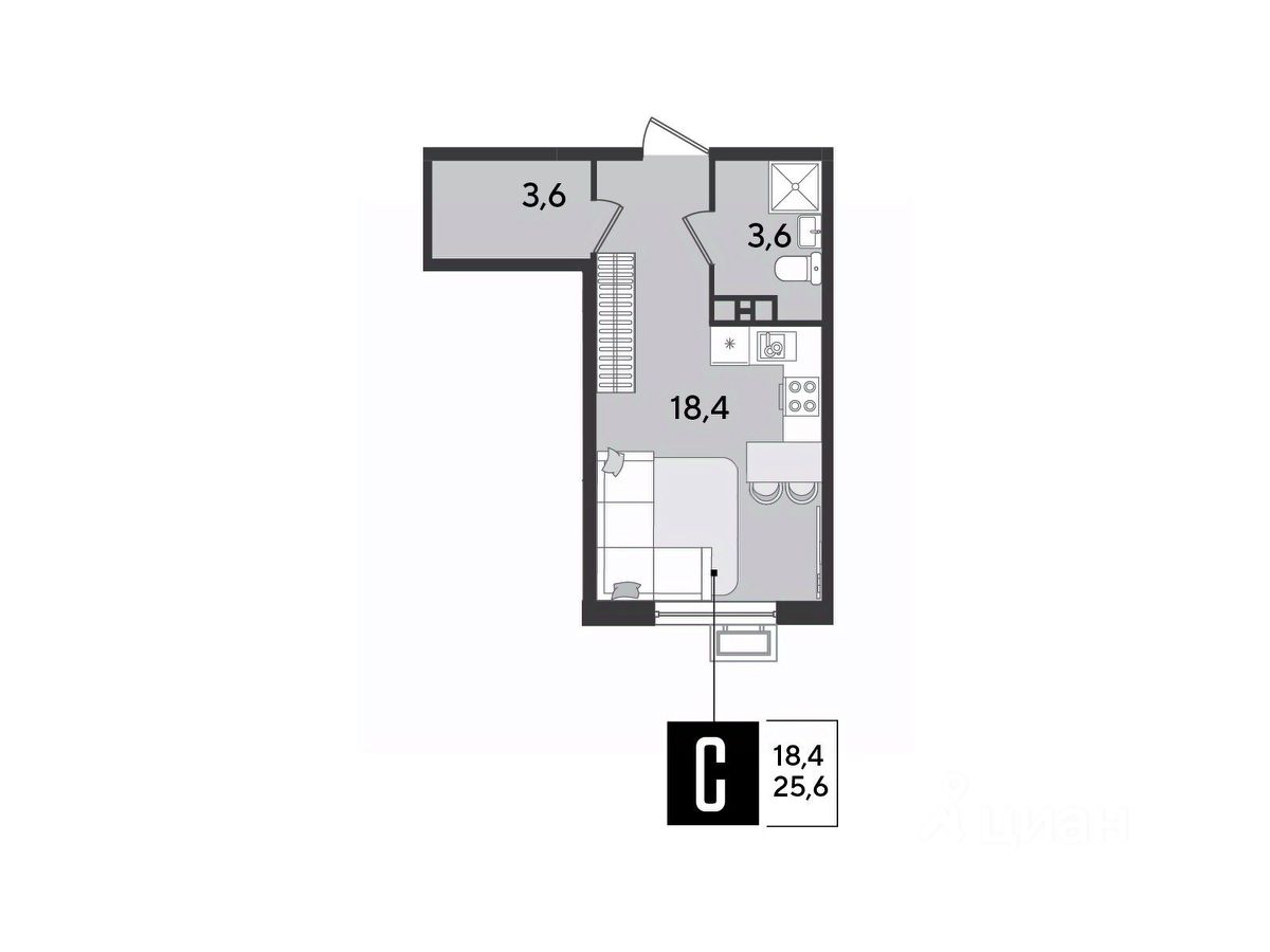 Срок сдачи: 2 кв. 2026, общей площадью 25.6 кв.м., на 3 этаже.