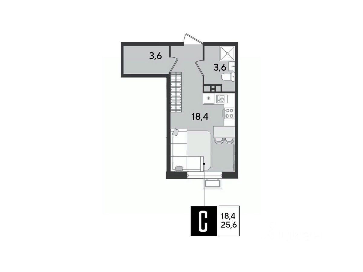 Срок сдачи: 2 кв. 2026, общей площадью 25.6 кв.м., на 6 этаже.