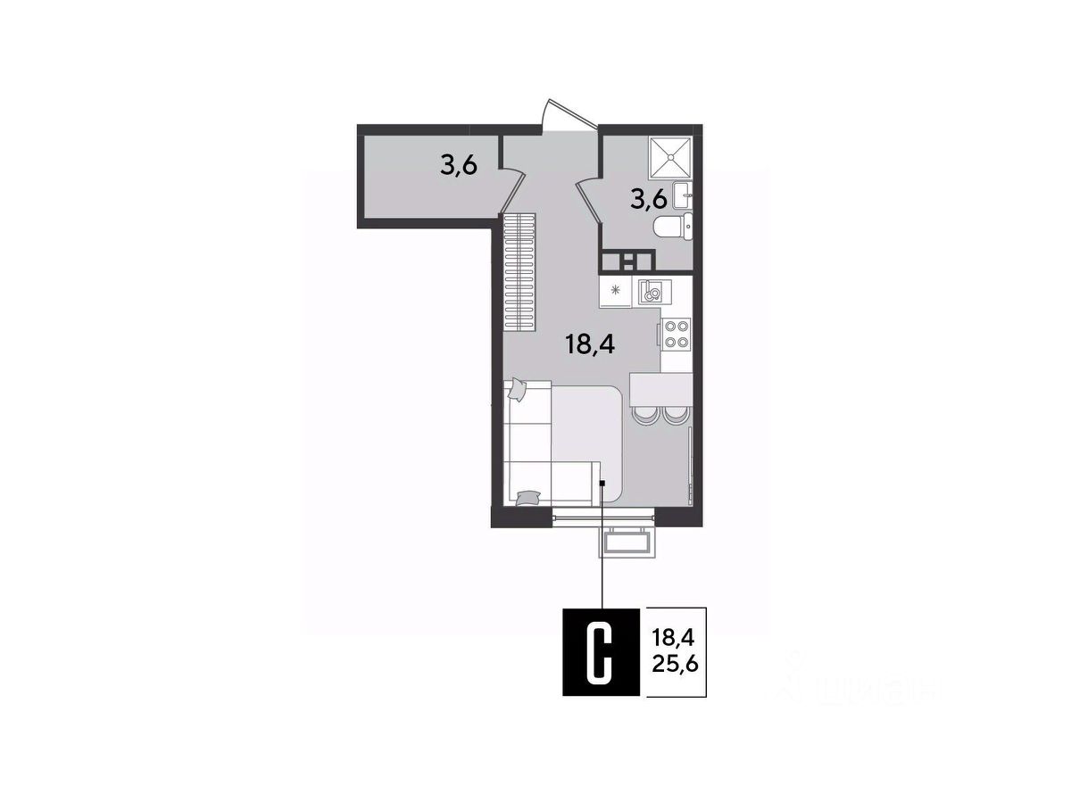 Срок сдачи: 2 кв. 2026, общей площадью 25.6 кв.м., на 8 этаже.