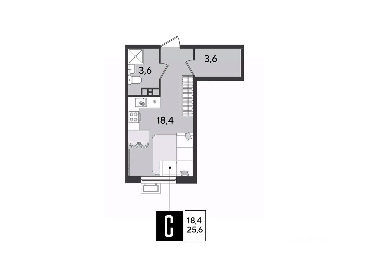 Срок сдачи: 2 кв. 2026, общей площадью 25.6 кв.м., на 6 этаже.