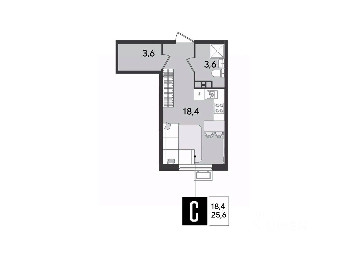 Срок сдачи: 2 кв. 2026, общей площадью 25.6 кв.м., на 7 этаже.