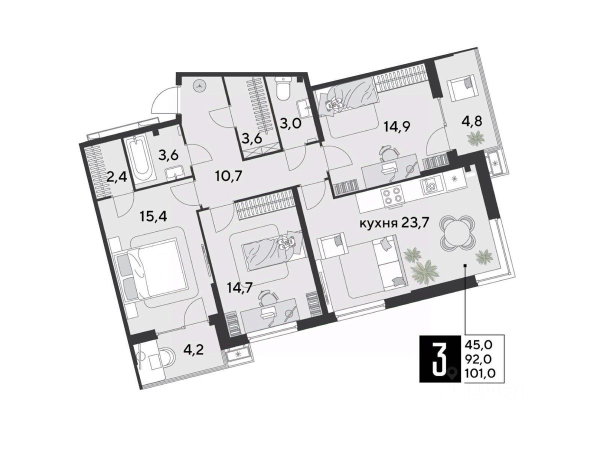 В продаже 3-комнатная квартира от застройщика! ЖК "Парк Победы 2", г. Краснодар, Литер 1