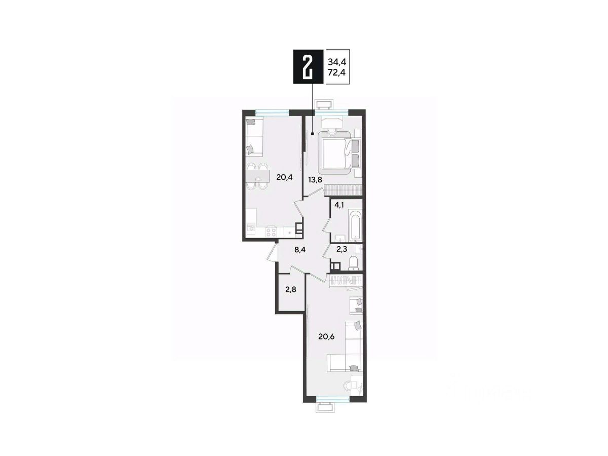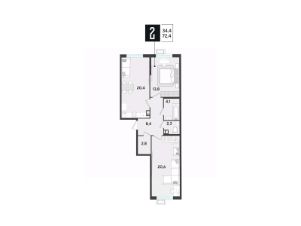 Срок сдачи: 2 кв. 2026, общей площадью 72.4 кв.м., на 4 этаже.