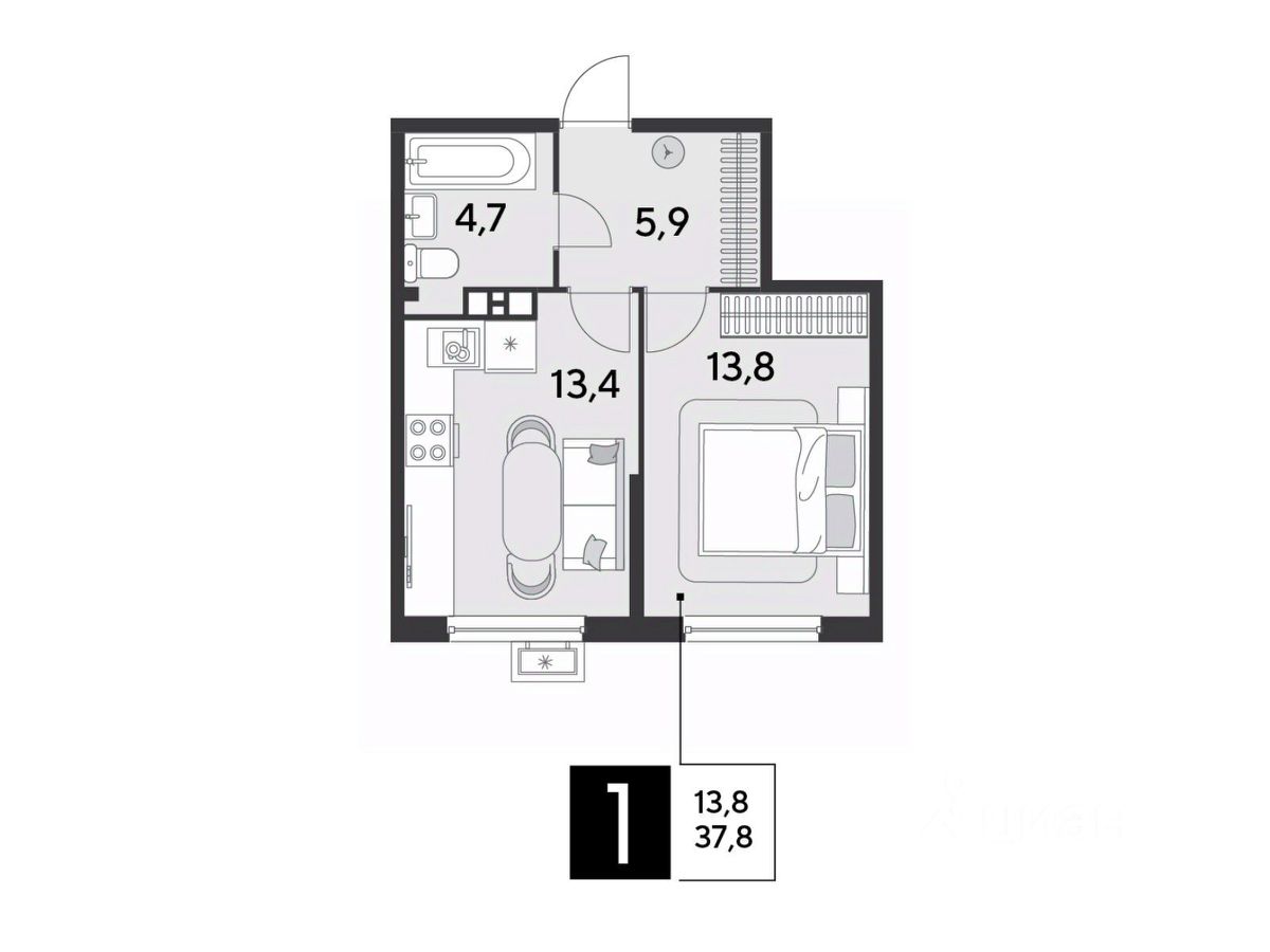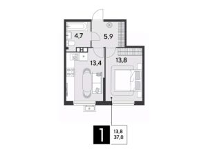 Срок сдачи: 2 кв. 2026, общей площадью 37.8 кв.м., на 5 этаже.