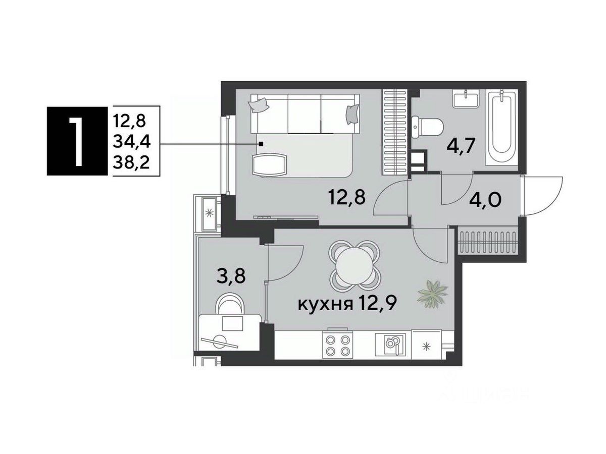 Срок сдачи: 2 кв. 2026, общей площадью 38.2 кв.м., на 6 этаже.