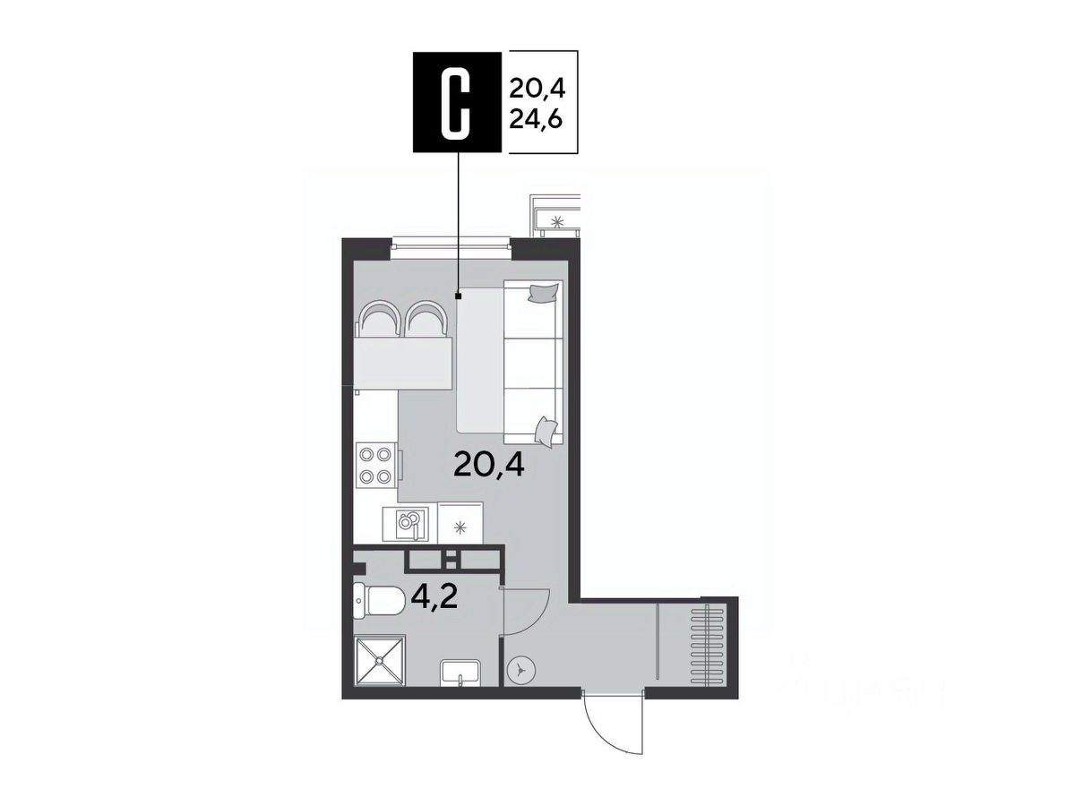 Срок сдачи: 2 кв. 2026, общей площадью 24.6 кв.м., на 12 этаже.
