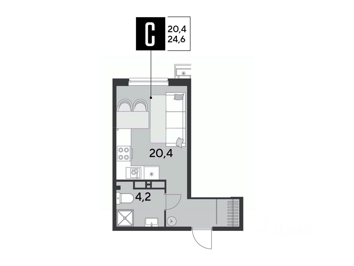 Срок сдачи: 2 кв. 2026, общей площадью 24.6 кв.м., на 13 этаже.