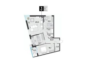 Срок сдачи: 2 кв. 2026, общей площадью 89.3 кв.м., на 14 этаже.