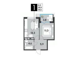 Срок сдачи: 2 кв. 2026, общей площадью 38.6 кв.м., на 15 этаже.