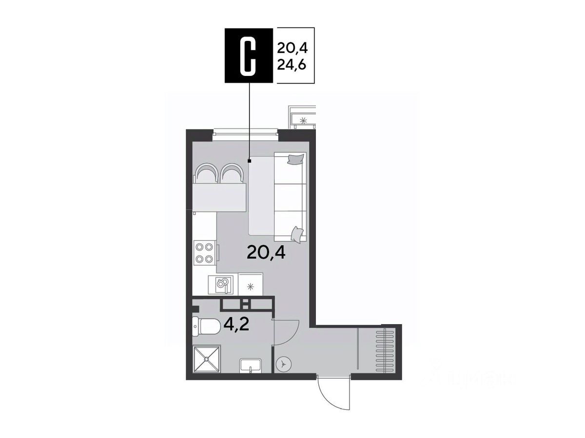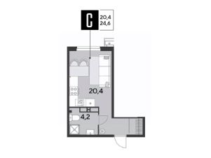 Срок сдачи: 2 кв. 2026, общей площадью 24.6 кв.м., на 15 этаже.