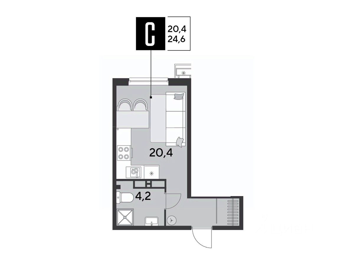 Срок сдачи: 2 кв. 2026, общей площадью 24.6 кв.м., на 18 этаже.