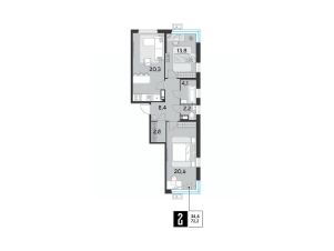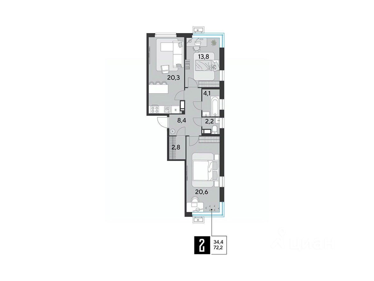 Срок сдачи: 2 кв. 2026, общей площадью 72.2 кв.м., на 18 этаже.