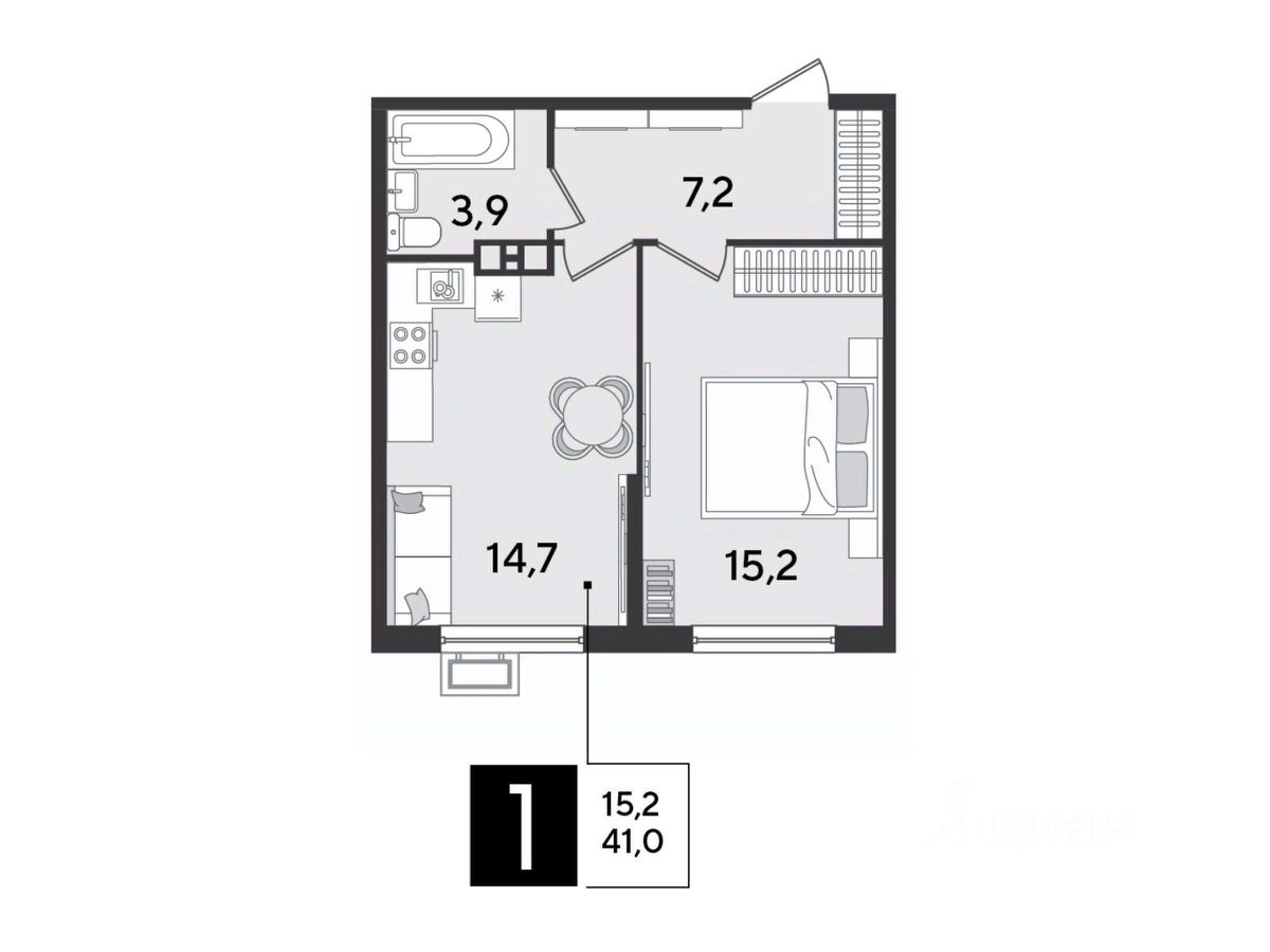 Срок сдачи: 2 кв. 2026, общей площадью 41 кв.м., на 9 этаже.
