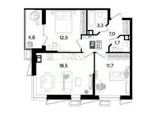 Срок сдачи: 1 кв. 2026, общей площадью 59.5 кв.м., на 3 этаже.