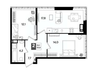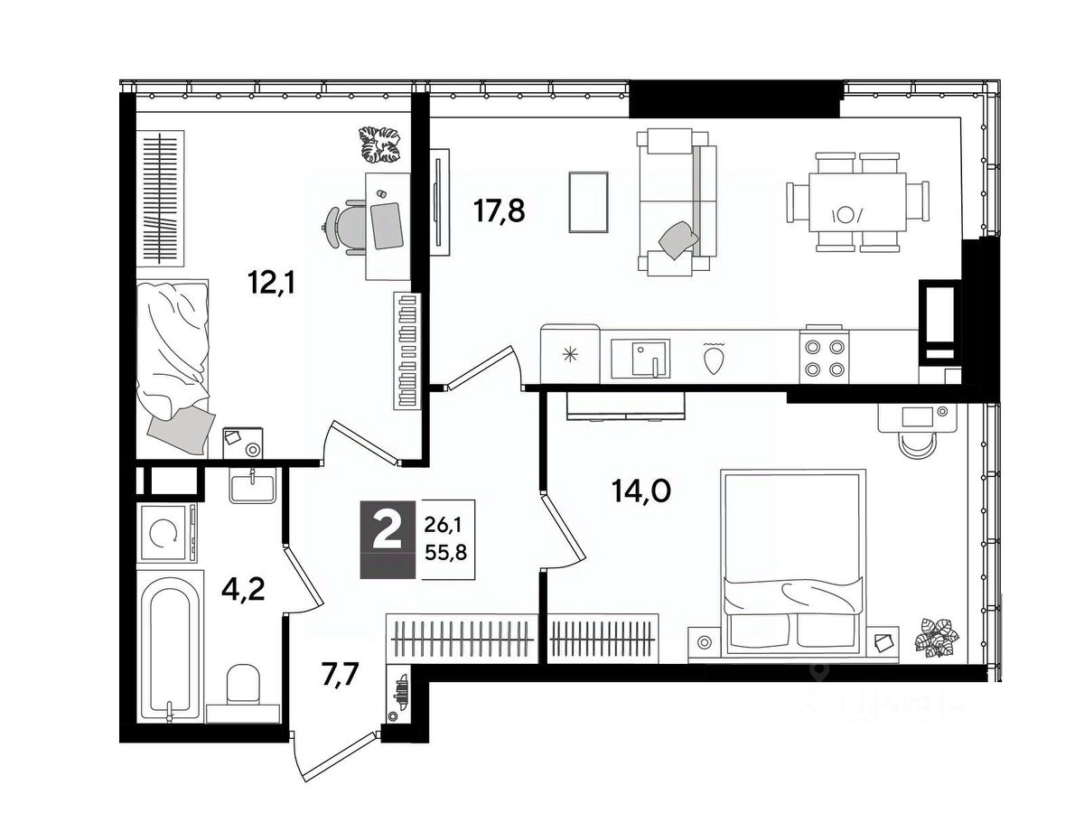В продаже 2-комнатная квартира от застройщика! Мкр. "DOGMA PARK" г. Краснодар, Литер 20 Срок сдачи: 4 кв. 2027, общей площадью 55.8 кв.м., на 19 этаже.