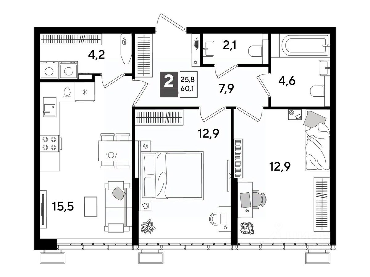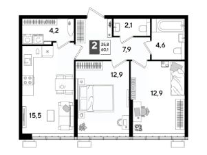 В продаже 2-комнатная квартира от застройщика! Мкр. "DOGMA PARK" г. Краснодар, Литер 17 Срок сдачи: 4 кв. 2027, общей площадью 59.6 кв.м., на 2 этаже.