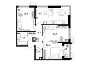 В продаже 3-комнатная квартира от застройщика! Мкр. "DOGMA PARK" г. Краснодар, Литер 17 Срок сдачи: 4 кв. 2027, общей площадью 68.6 кв.м., на 8 этаже.