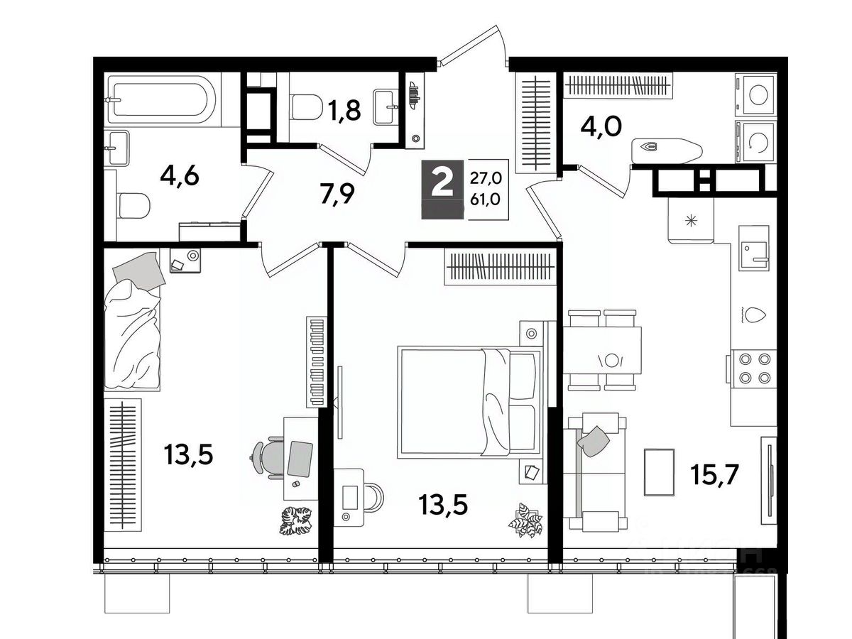 В продаже 2-комнатная квартира от застройщика! Мкр. "DOGMA PARK" г. Краснодар, Литер 17 Срок сдачи: 4 кв. 2027, общей площадью 58.3 кв.м., на 16 этаже.