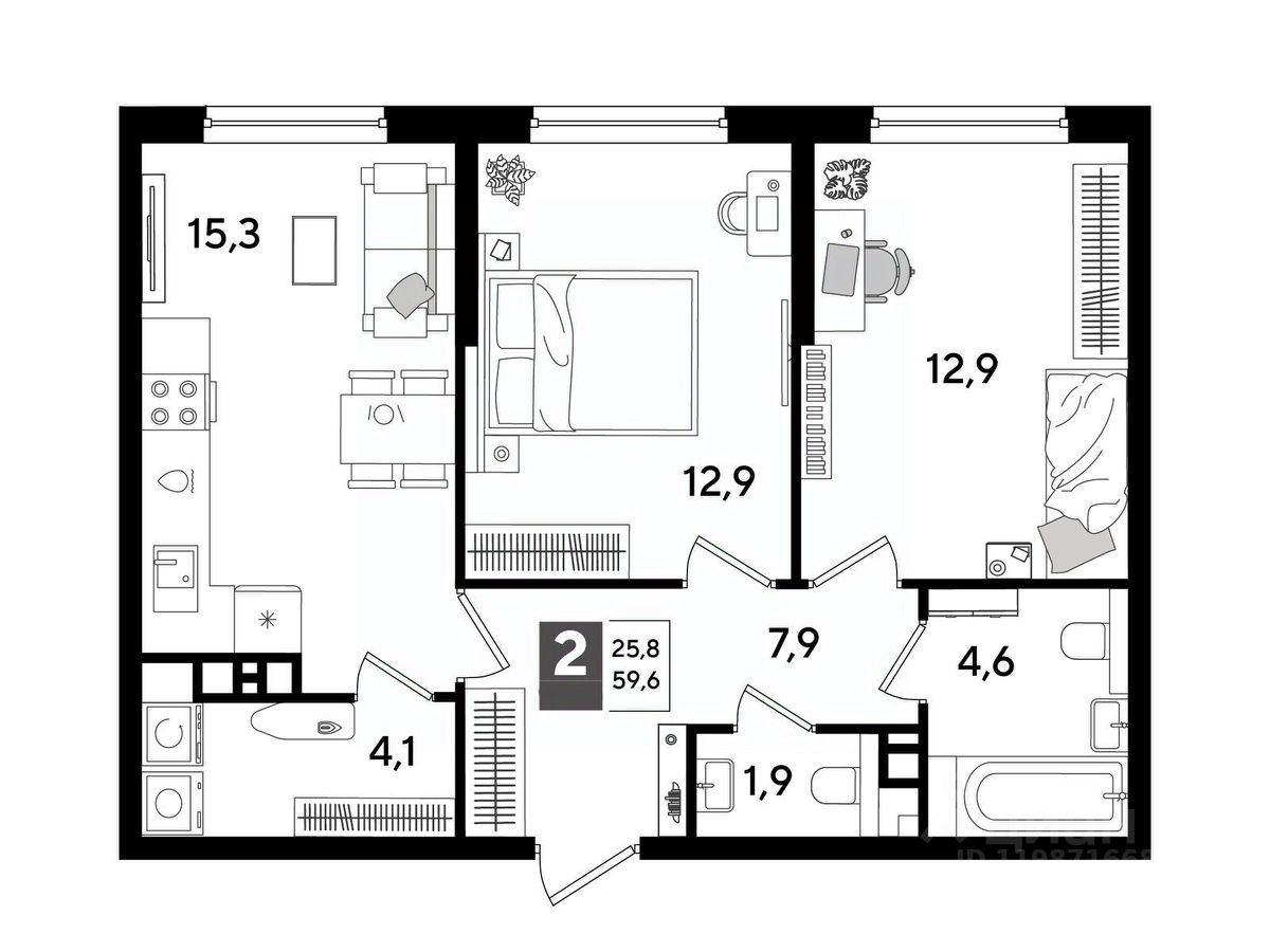В продаже 2-комнатная квартира от застройщика! Мкр. "DOGMA PARK" г. Краснодар, Литер 16 Срок сдачи: 4 кв. 2027, общей площадью 59.6 кв.м., на 8 этаже.