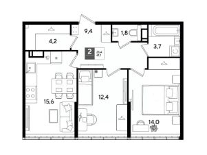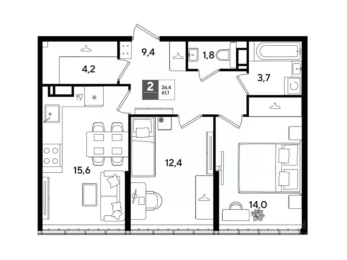 В продаже 2-комнатная квартира от застройщика! Мкр. "DOGMA PARK" г. Краснодар, Литер 21 Срок сдачи: 4 кв. 2027, общей площадью 61.1 кв.м., на 16 этаже.