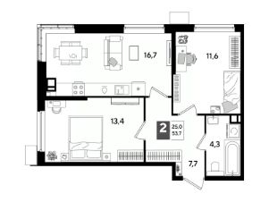 В продаже 2-комнатная квартира от застройщика! Мкр. "DOGMA PARK" г. Краснодар, Литер 31 Срок сдачи: 3 кв. 2027, общей площадью 53.7 кв.м., на 7 этаже.