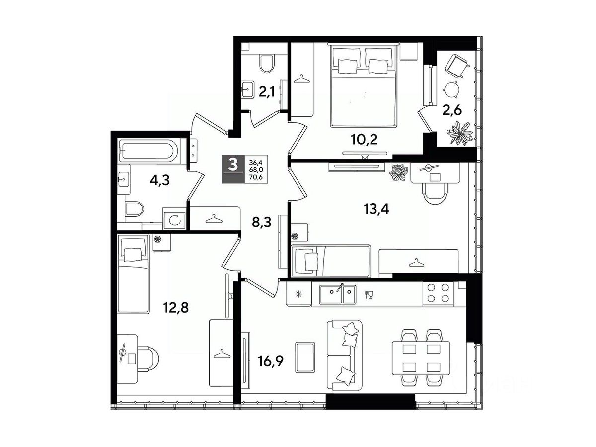 В продаже 3-комнатная квартира от застройщика! Мкр. "DOGMA PARK" г. Краснодар, Литер 31 Срок сдачи: 3 кв. 2027, общей площадью 70.6 кв.м., на 2 этаже.