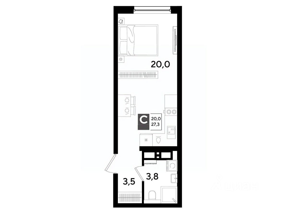 В продаже квартира-студия от застройщика! Мкр. "DOGMA PARK" г. Краснодар, Литер 31 Срок сдачи: 3 кв. 2027, общей площадью 27.3 кв.м., на 13 этаже.