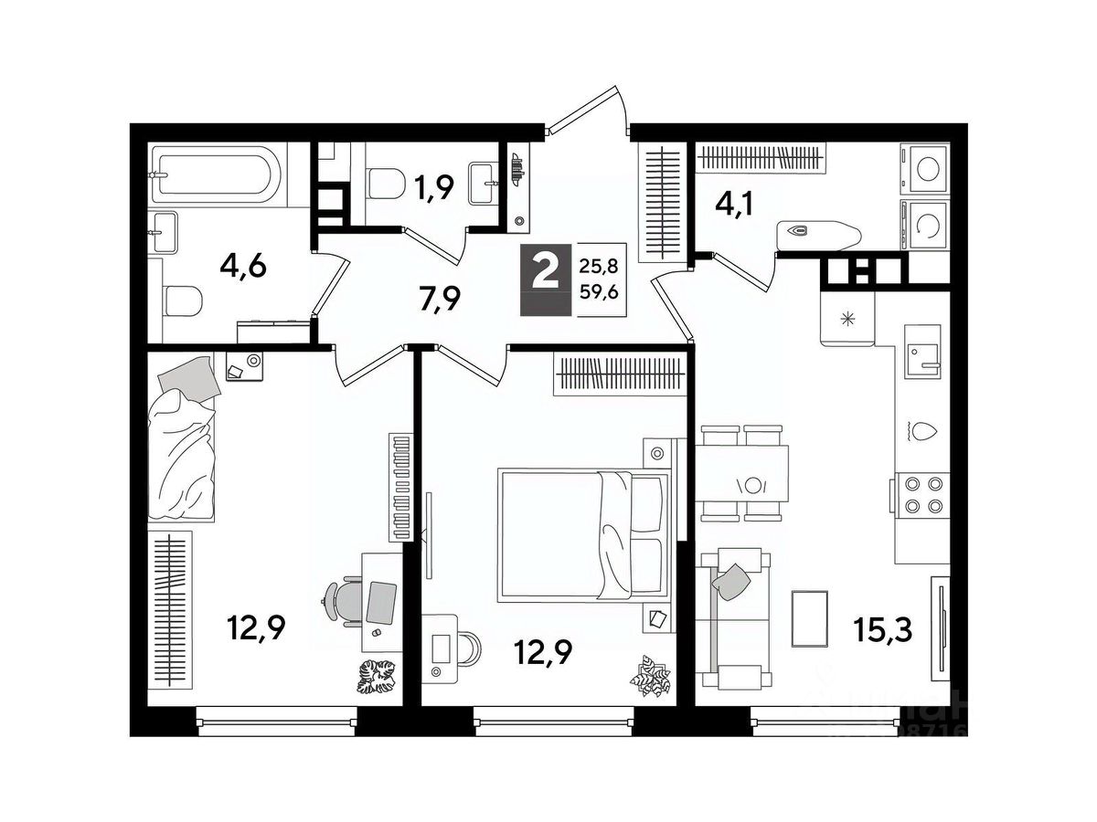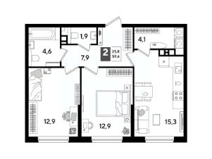 В продаже 2-комнатная квартира от застройщика! Мкр. "DOGMA PARK" г. Краснодар, Литер 15 Срок сдачи: 4 кв. 2027, общей площадью 59.6 кв.м., на 8 этаже.
