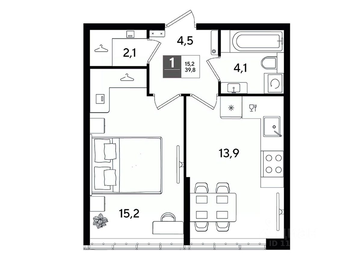 В продаже 1-комнатная квартира от застройщика! Мкр. "DOGMA PARK" г. Краснодар, Литер 24 Срок сдачи: 4 кв. 2027, общей площадью 39.8 кв.м., на 2 этаже.