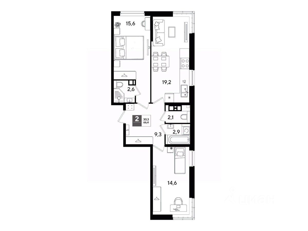 В продаже 2-комнатная квартира от застройщика! Мкр. "DOGMA PARK" г. Краснодар, Литер 24 Срок сдачи: 4 кв. 2027, общей площадью 66.4 кв.м., на 7 этаже.