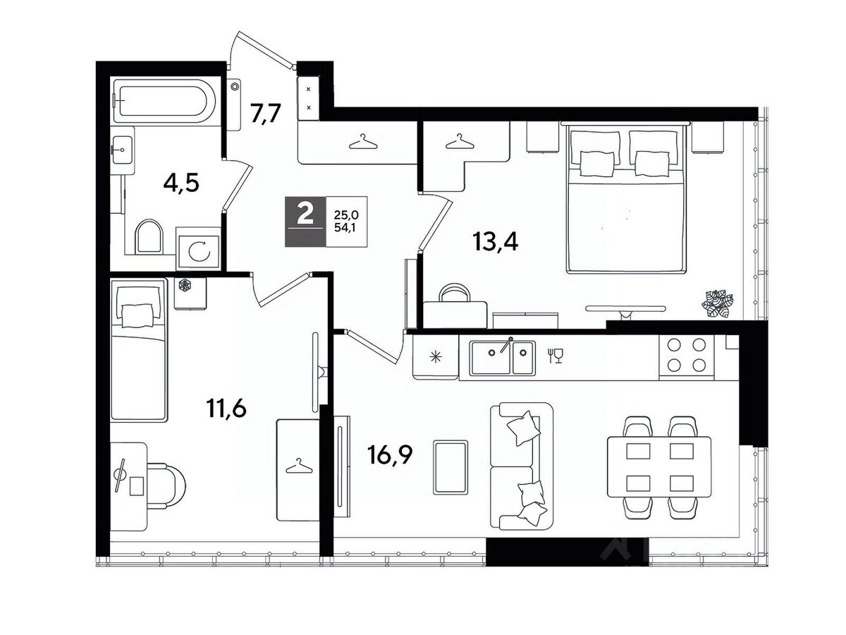 В продаже 2-комнатная квартира от застройщика! Мкр. "DOGMA PARK" г. Краснодар, Литер 24 Срок сдачи: 4 кв. 2027, общей площадью 54.1 кв.м., на 2 этаже.