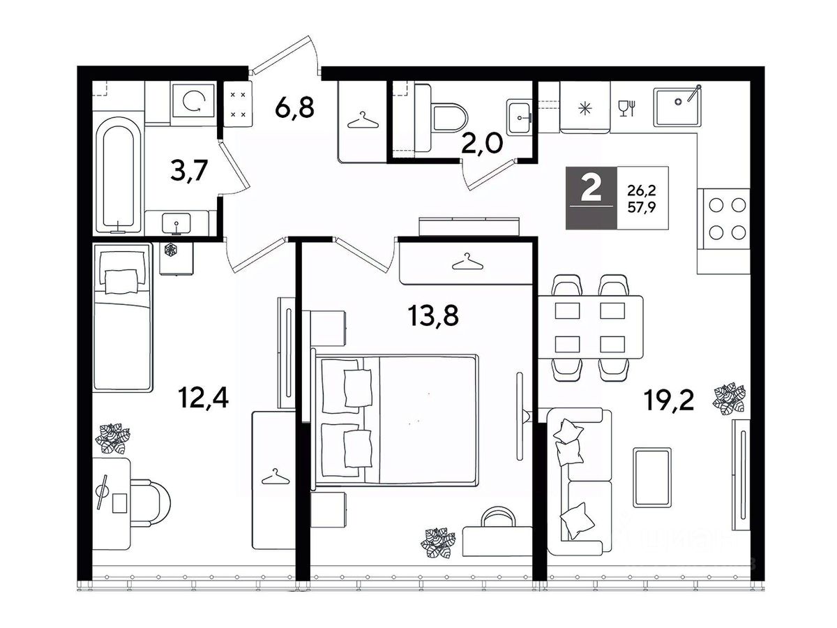 В продаже 2-комнатная квартира от застройщика! Мкр. "DOGMA PARK" г. Краснодар, Литер 24 Срок сдачи: 4 кв. 2027, общей площадью 57.9 кв.м., на 2 этаже.