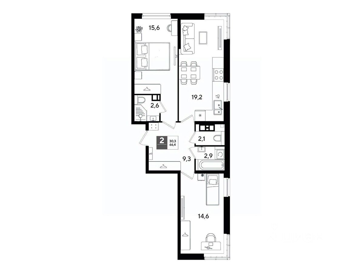 В продаже 2-комнатная квартира от застройщика! Мкр. "DOGMA PARK" г. Краснодар, Литер 24 Срок сдачи: 4 кв. 2027, общей площадью 66.4 кв.м., на 6 этаже.