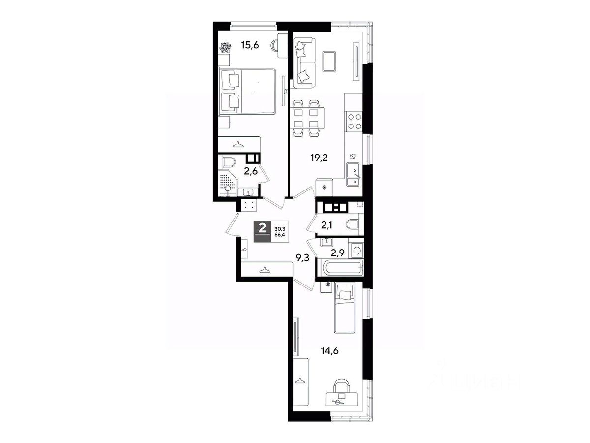 В продаже 2-комнатная квартира от застройщика! Мкр. "DOGMA PARK" г. Краснодар, Литер 24 Срок сдачи: 4 кв. 2027, общей площадью 66.4 кв.м., на 9 этаже.